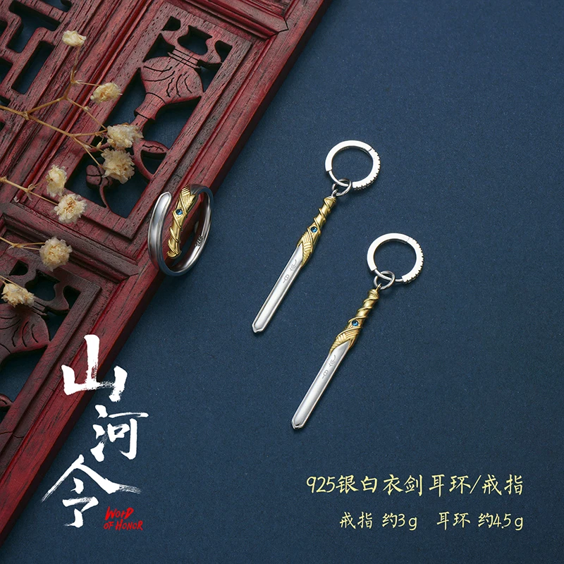 Product Name: Woord Van Eer Officiële Shan Hij Leng Kexing Zhou Zishu 925 Zilveren Zwaard Zilveren Oorbellen Ring